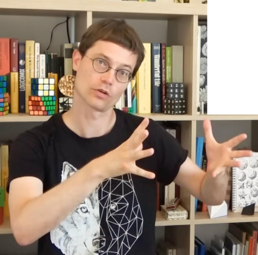 The picture on the screen is made from a hill on Olkhon island, also called the heart of the lake Baikal. The picture of myself is a picture of a (Polaroid) picture made at Math and Art conference that I organized in CIRM in December 2023. I am playing with a top made by Ulysse Lacoste in a t-shirt Свободу всем! (Liberty to all, in Russian) demanding the liberty for political prisoners. Both are taken by Bertrand Paris-Romaskevich CC BY-SA.